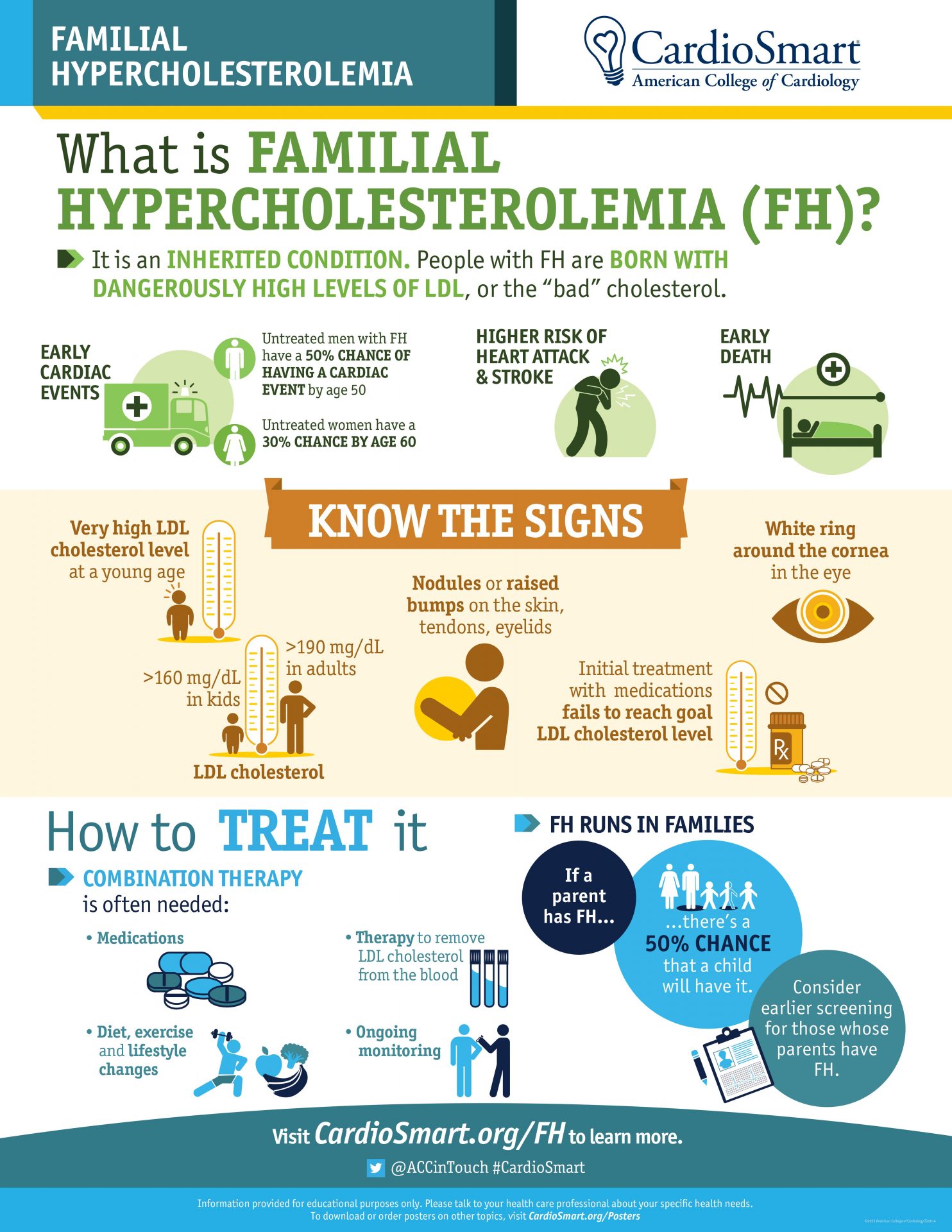 It is an INHERITED CONDITION. People with FH are BORN WITH DANGEROUSLY HIGH LEVELS OF LDL, or the “bad” cholesterol